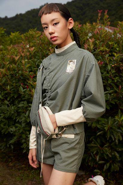 绿格子挎包抽褶棒球扣上衣WANGREENxCHENCLEAN原创设计师WXC