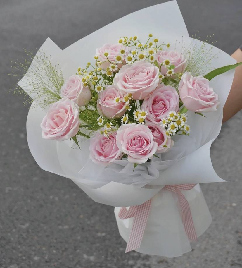 [高品质]新鲜粉色玫瑰花花束云南版纳花店