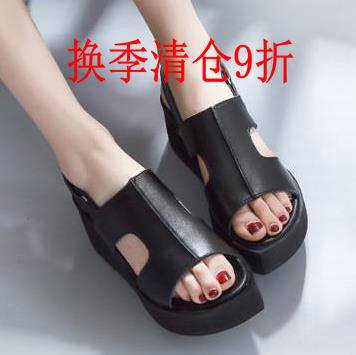 夏季新款松糕跟防水台真皮凉鞋女后空百搭女鞋