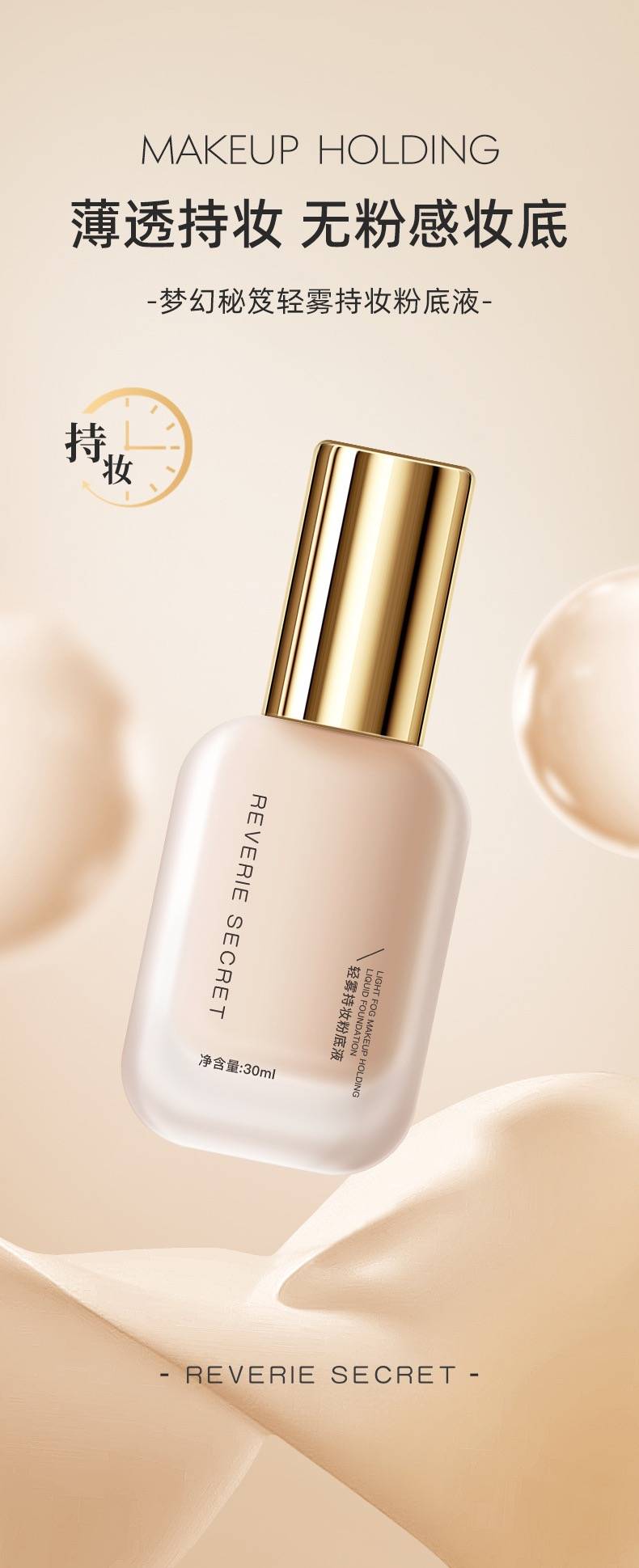 梦幻秘笈轻薄持妆粉底液保湿补水不卡粉BB霜持久遮瑕不脱妆