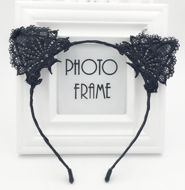 韩国可爱蕾丝猫耳朵发箍兔耳朵头发饰蕾丝花边发卡节日派对萌头箍