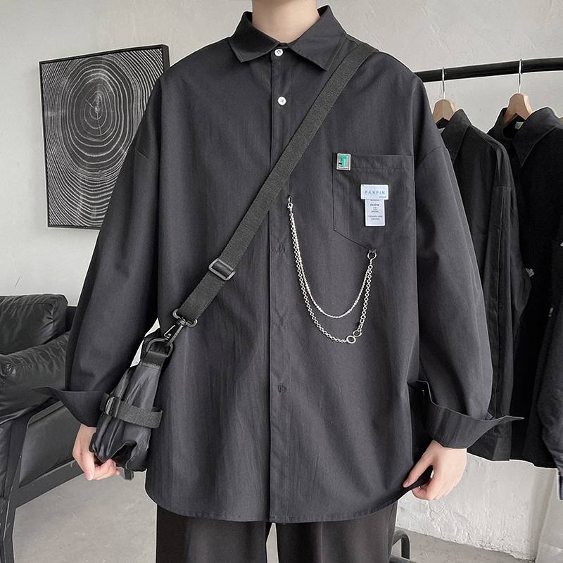 加绒衬衫男长袖秋冬潮ins痞帅港风日系jk衬衣宽松大码dk制服外套
