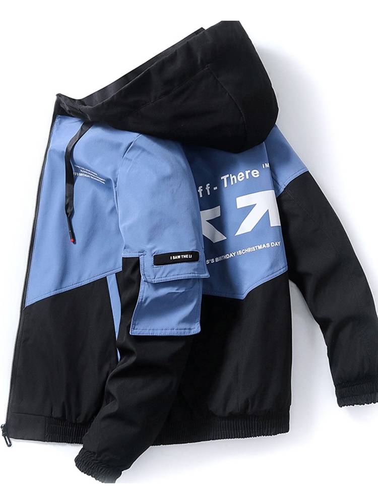 外套男士春秋季2021年新款连帽潮牌宽松撞色夹克加绒冬装休闲学生