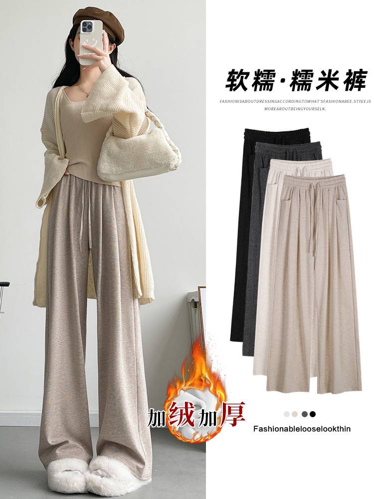 糯米裤秋冬季垂感高腰小个子窄版阔腿裤女软糯休闲直筒加绒裤子女