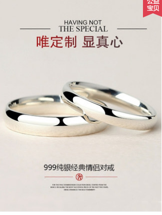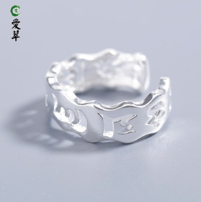爱翠珠宝六字真言男士990纯银戒指潮男食指 个性单身韩版开口指环