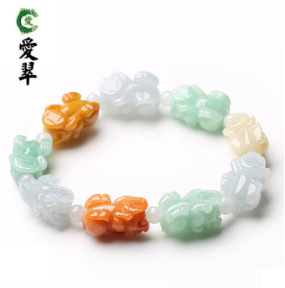 爱翠珠宝A货缅甸翡翠A货冰种貔貅天然玉石男女款手链包邮