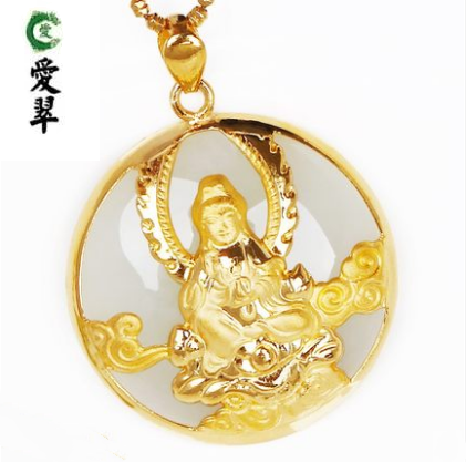 爱翠珠宝2019男女款天然和田白玉镶金吊坠玉石包邮