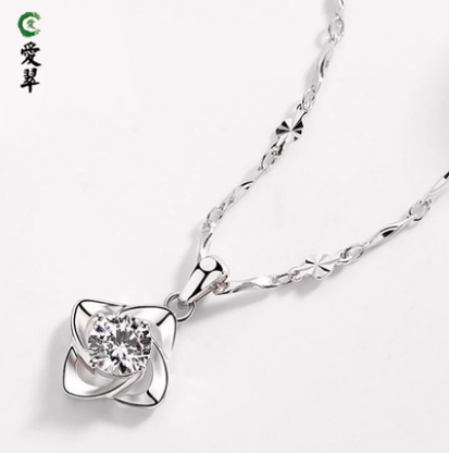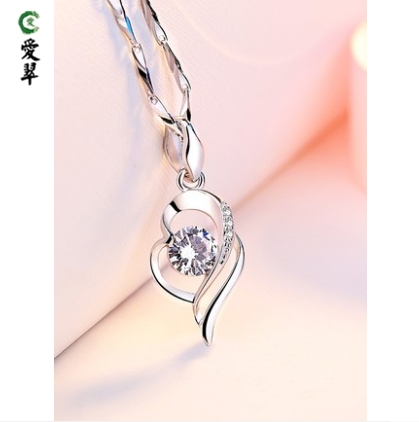 爱翠珠宝999纯银女款锁骨项链简约吊坠 送女朋友老婆情人节礼物