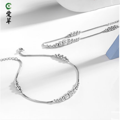爱翠珠宝999纯银女款转运珠脚链子个性复古性感设计足链