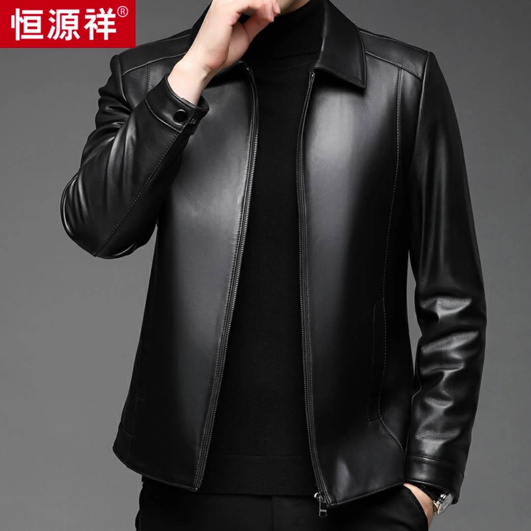 恒源祥品牌绵羊皮皮衣男装中老年防风柔软真皮皮夹克外套爸爸上衣