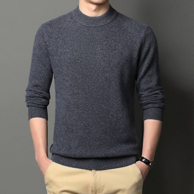 100%全羊毛毛衣男冬季青年纯色半高领领加厚长袖羊毛衫打底衫男