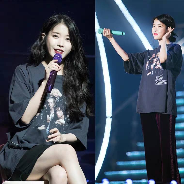 IU李知恩同款韩版演唱会新款chic圆领前后花T恤