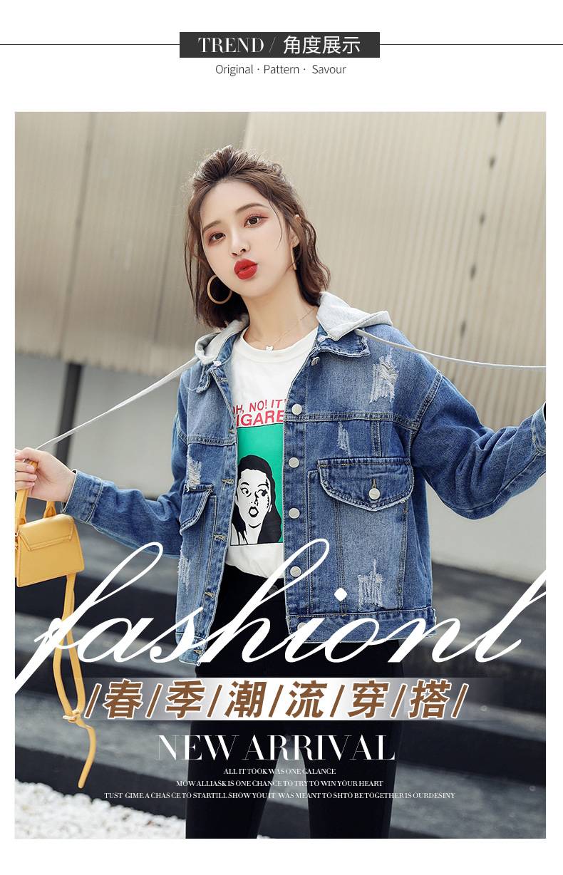 网红牛仔外套女2019新款春秋宽松短款韩版连帽bf休闲上衣夹克潮流