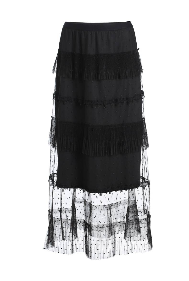 ochirly欧时力2019新款夏装花边圆点网布半身裙高腰女1ZY2070970