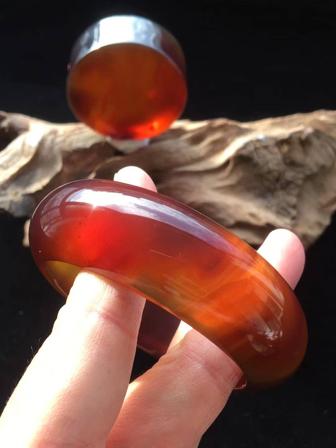 Aini琥珀 天然缅甸琥珀--极品红蜜手镯 直播间看货