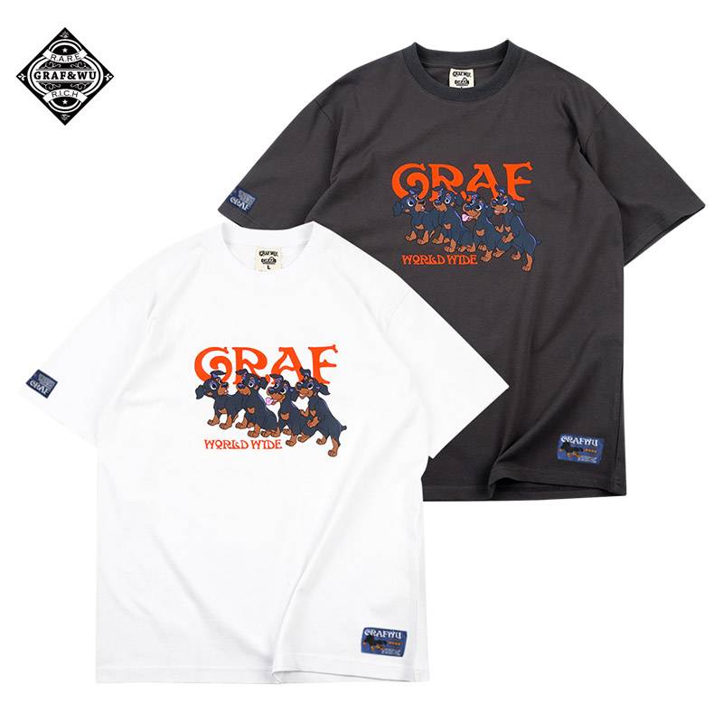 GRAF原创品牌StreetGossip四个baby杜宾前后呼应春夏美式短袖T恤