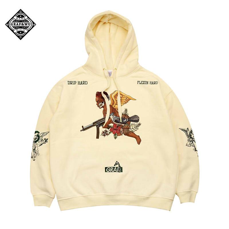 GRAF原创品牌Drip Set Flexin 奶油红色脏辫骷髅天使加绒厚帽衫