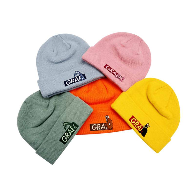 GRAF原创品牌BOXLOGO玉绿橘色雾霾蓝猪猪粉新五色秋冬针织线帽