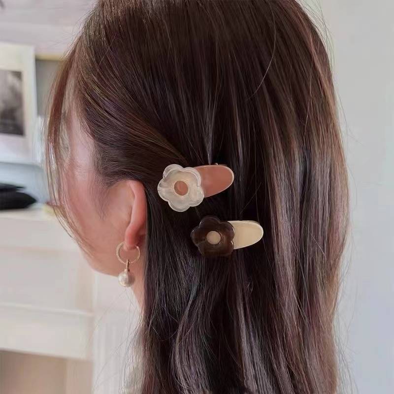 可爱少女奶茶色爱心小花朵发卡韩版撞色奶油色对夹小巧鸭嘴夹女
