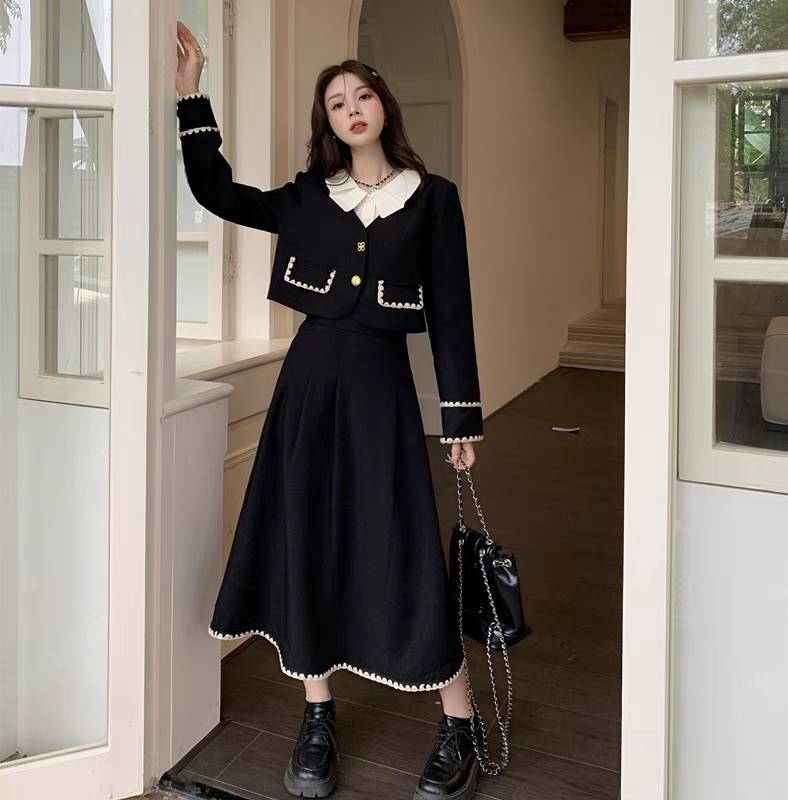 清新甜美高腰A字裙两件套2019秋冬新款针织连衣裙女装时尚套装