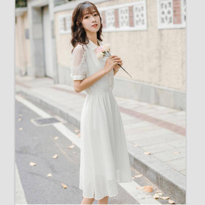 2021新款雪纺连衣裙女小清新收腰气质温柔短袖森系超仙女裙夏