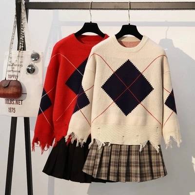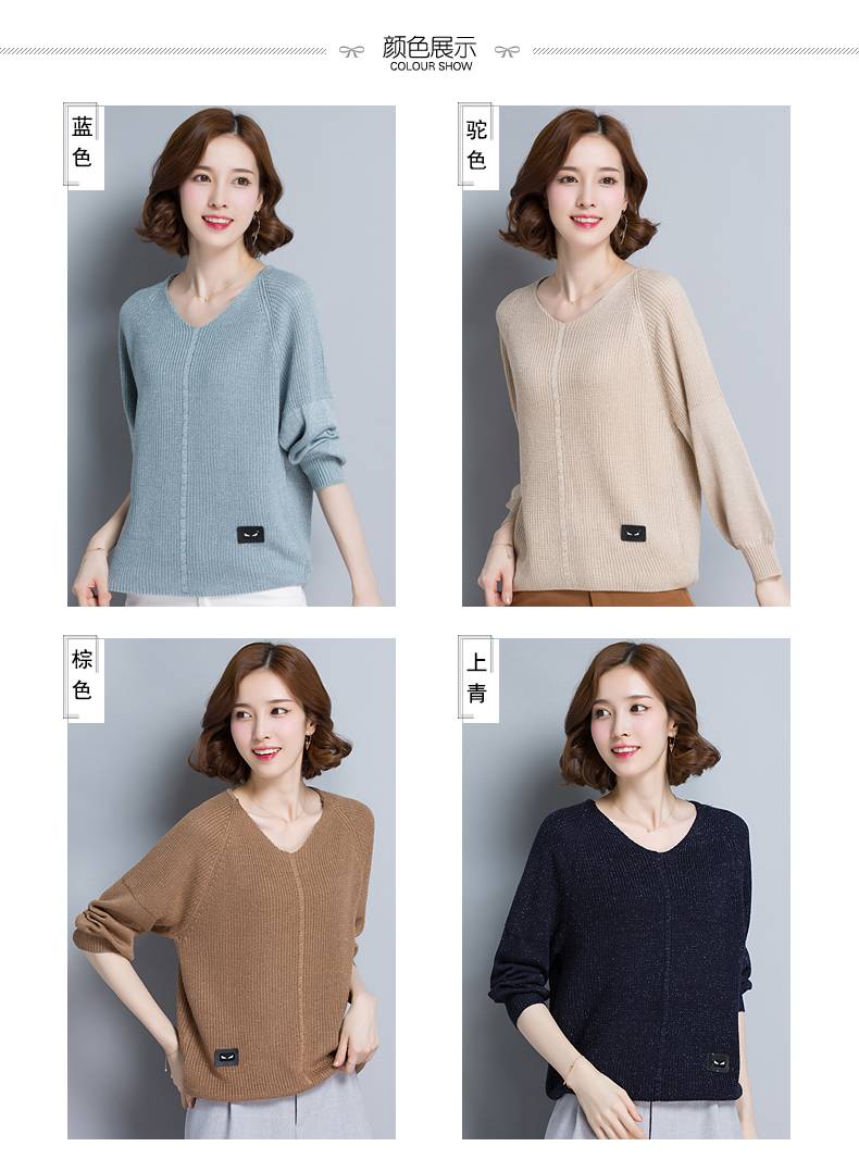 毛衣女宽松2018秋季新款V领套头针织衫女长袖学生上衣