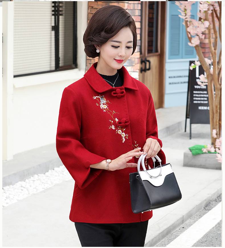 中老年人秋装长袖服装奶奶春秋款老人毛呢外套