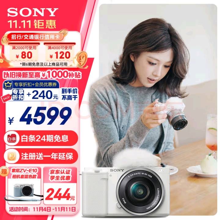 索尼(SONY)ZV-E10L 半画幅微单相机 16-50mm标准镜头套装 美肤拍照 颜值机身 精准对焦 VLOG A