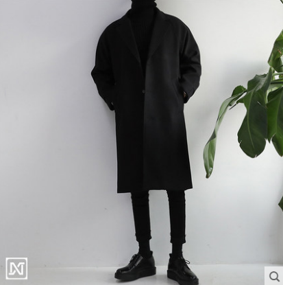 秋季中长款男装风衣男青年休闲毛呢料宽松冬季韩版呢子大衣外套潮