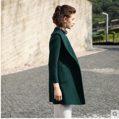 2018秋冬新款双面呢大衣中长款斜纹修身显瘦韩版毛呢外套无羊绒三色随意挑选女神风格下单领劵减10元