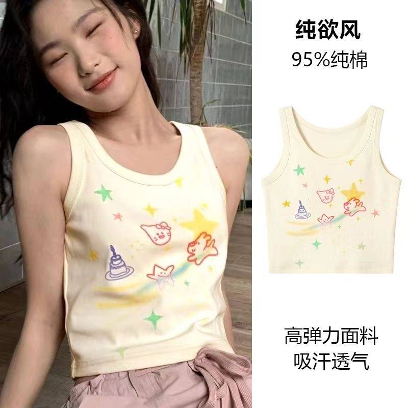 涂鸦夏季背心女外穿印花内搭吊带可爱辣妹修身短款露脐设计感上衣