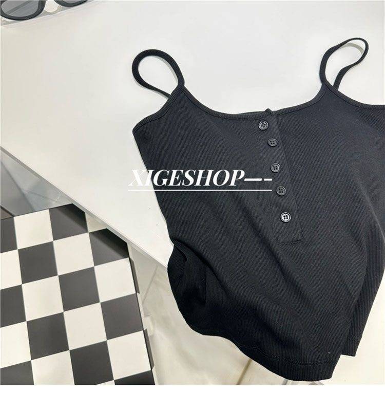 纽扣带胸垫吊带背心女内搭修身短款美背文胸一体上衣打底外穿紧身
