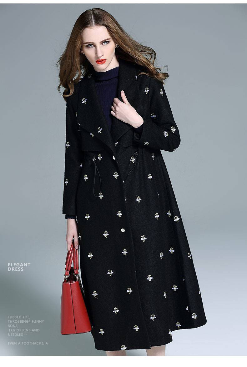 小蜜蜂刺绣毛呢外套女2018冬季新款秋冬羊毛呢子大衣女加厚中长款 656.00 已售:0件