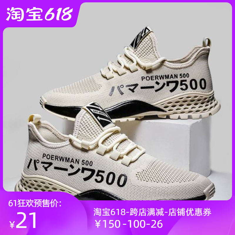 夏季 男鞋 休闲运动男鞋 2021 缓震耐用 透气网布运动鞋 男 潮流新款 轻质飞织休闲鞋