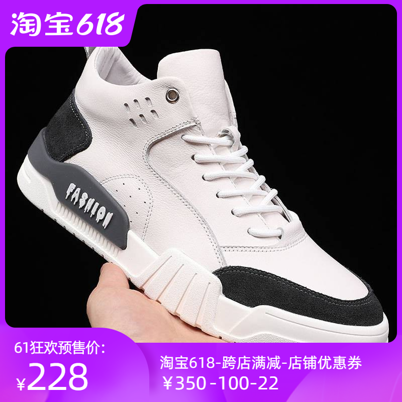 欧洲站 潮男 高帮鞋 白色 真皮 春夏新款 运动小白鞋 韩版 百搭 高邦板鞋 男