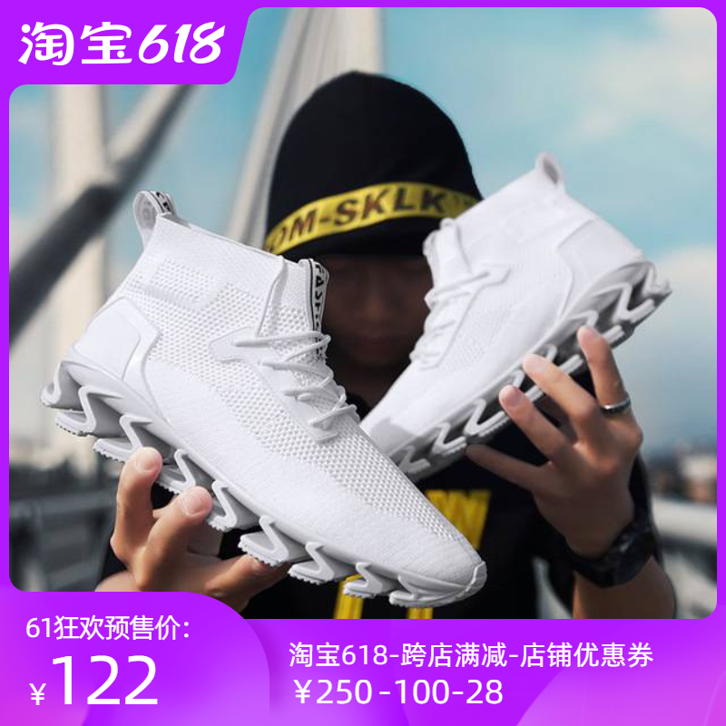 新款 刀锋鞋男 潮鞋 高帮网面 跑步鞋 时尚型男 防滑耐磨 透气减震 休闲运动鞋