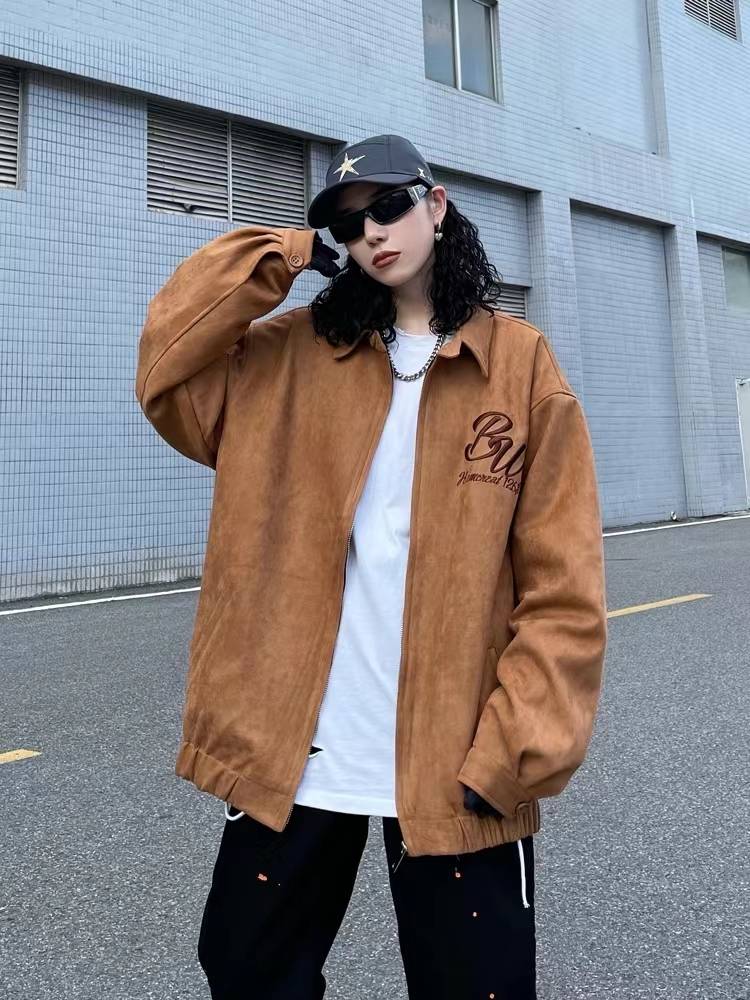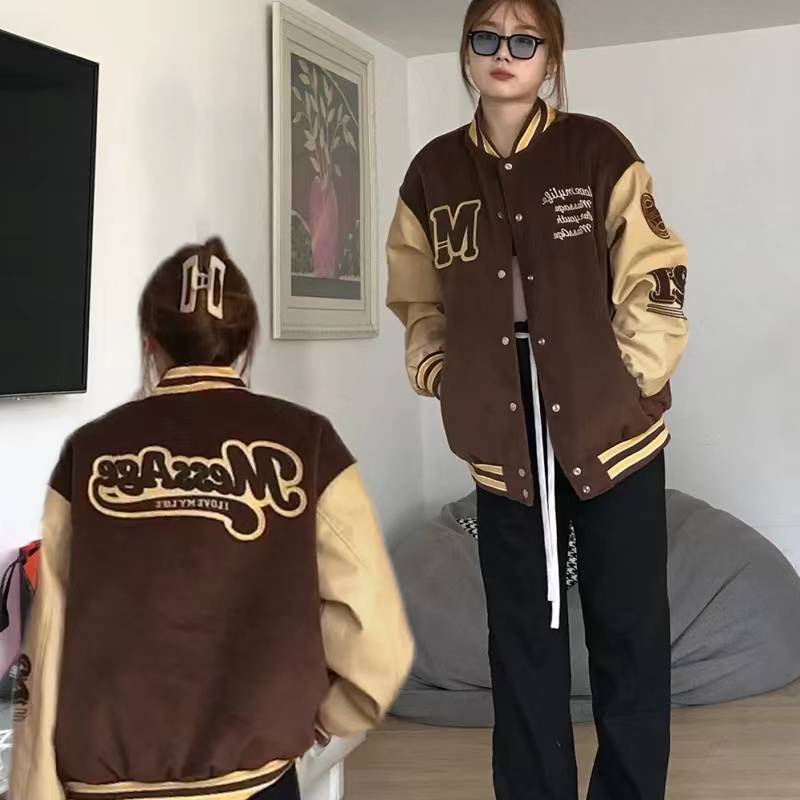 Vintage棒球服外套女秋冬款式复古皮绒oversize小众机车夹克 300.00 已售:0件