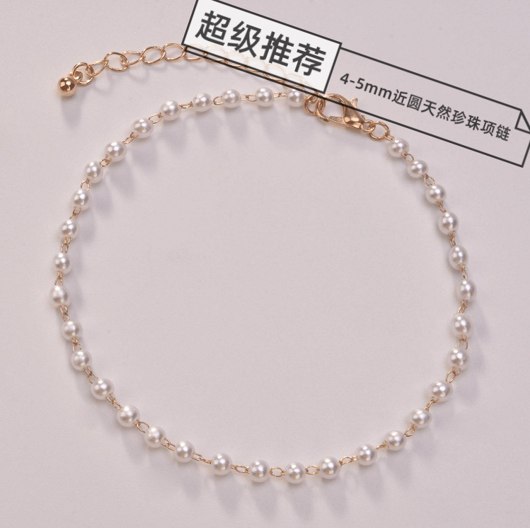 欧美跨境饰品 手工圆形珍珠链条脚链女 个性气质流行白色沙滩脚饰