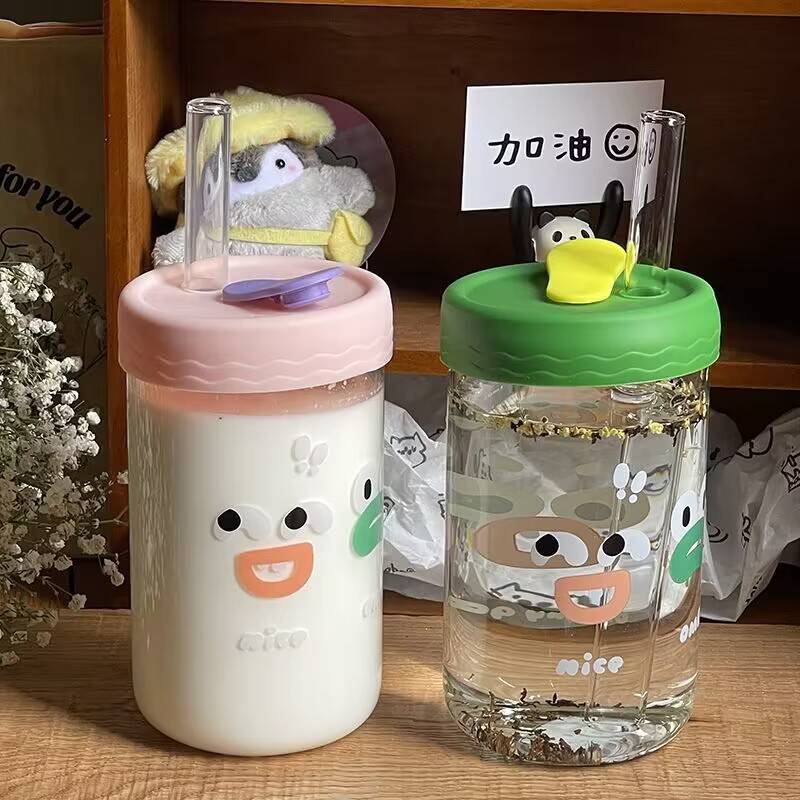 物生物创意牛奶杯带盖果汁玻璃杯可爱咖啡早餐杯子耐热水杯饮料瓶