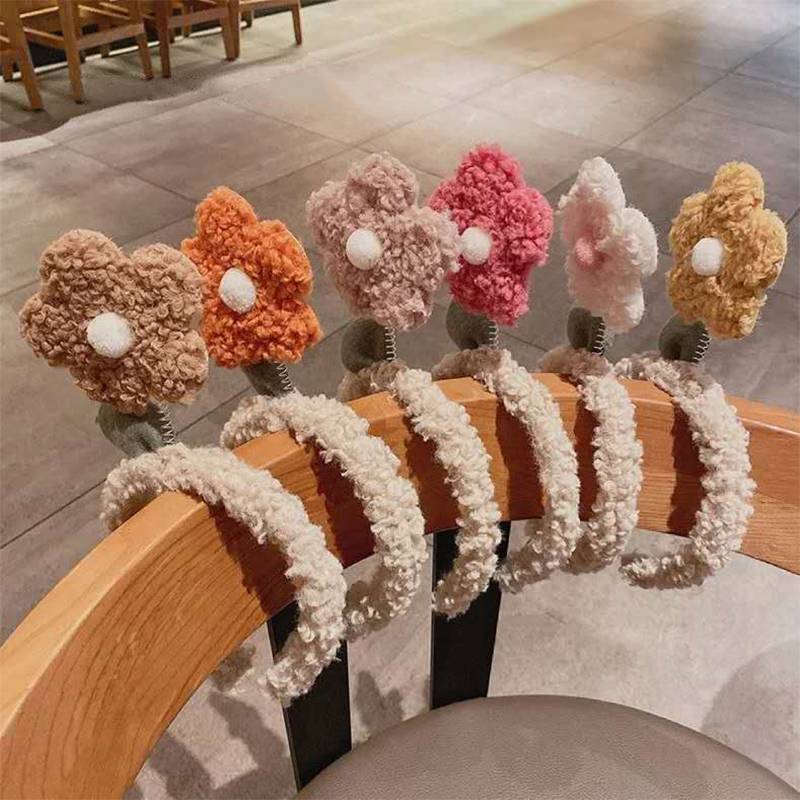 ins可爱超萌羊羔毛花朵发箍女韩国网红甜美头箍简约头饰洗脸束发