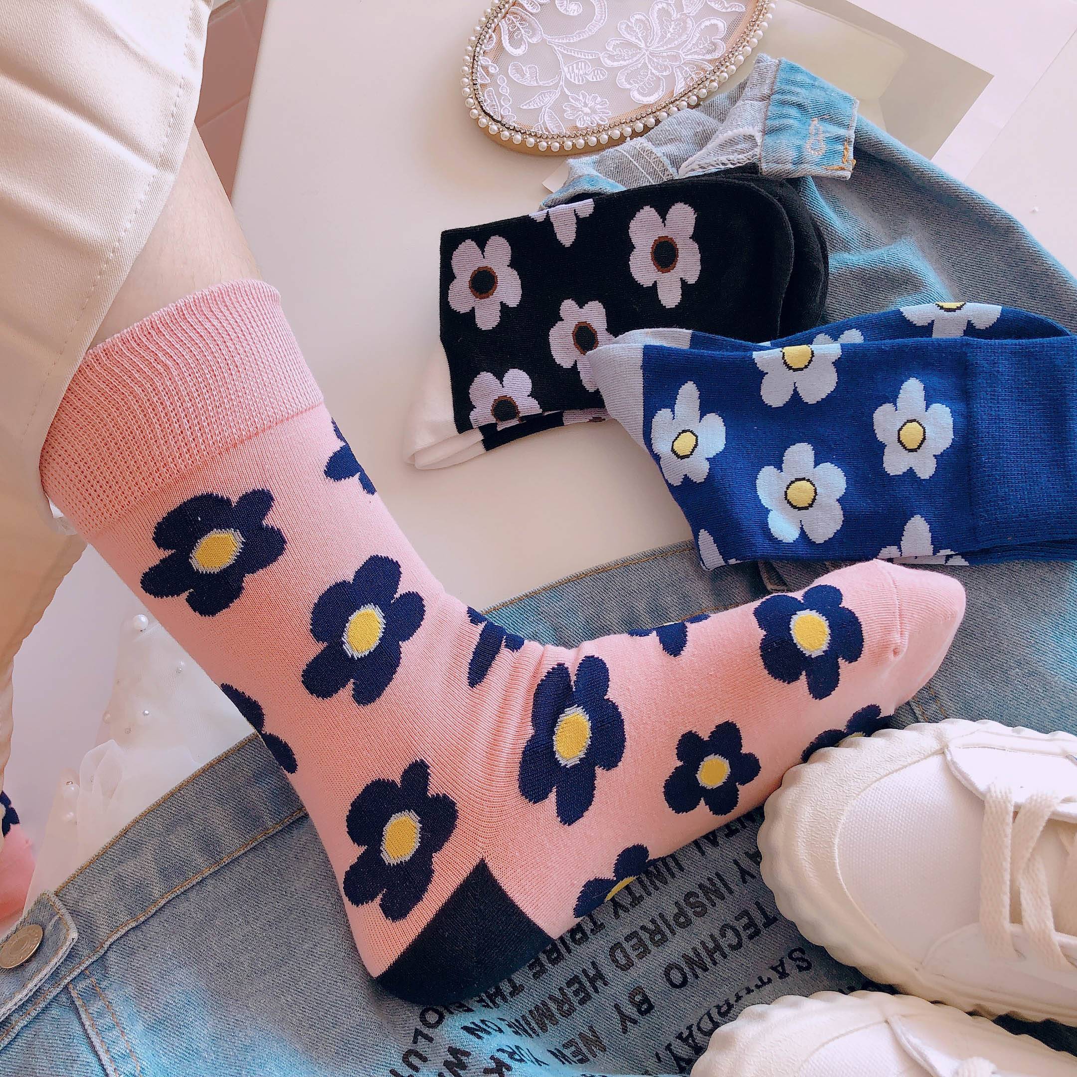 网红袜子女中筒袜夏季薄款堆堆袜ins潮可爱百搭小花朵棉袜