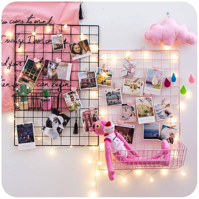 网格照片墙装饰品网红ins风少女心房间布置免打孔置物架照片挂墙