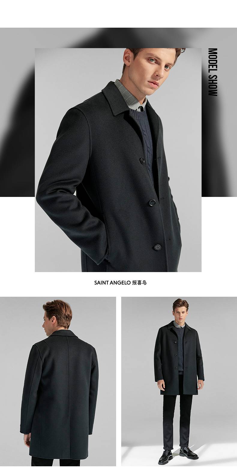 报喜鸟2021秋季新款男商务休闲长款翻领毛呢大衣宽松保暖羊毛外套