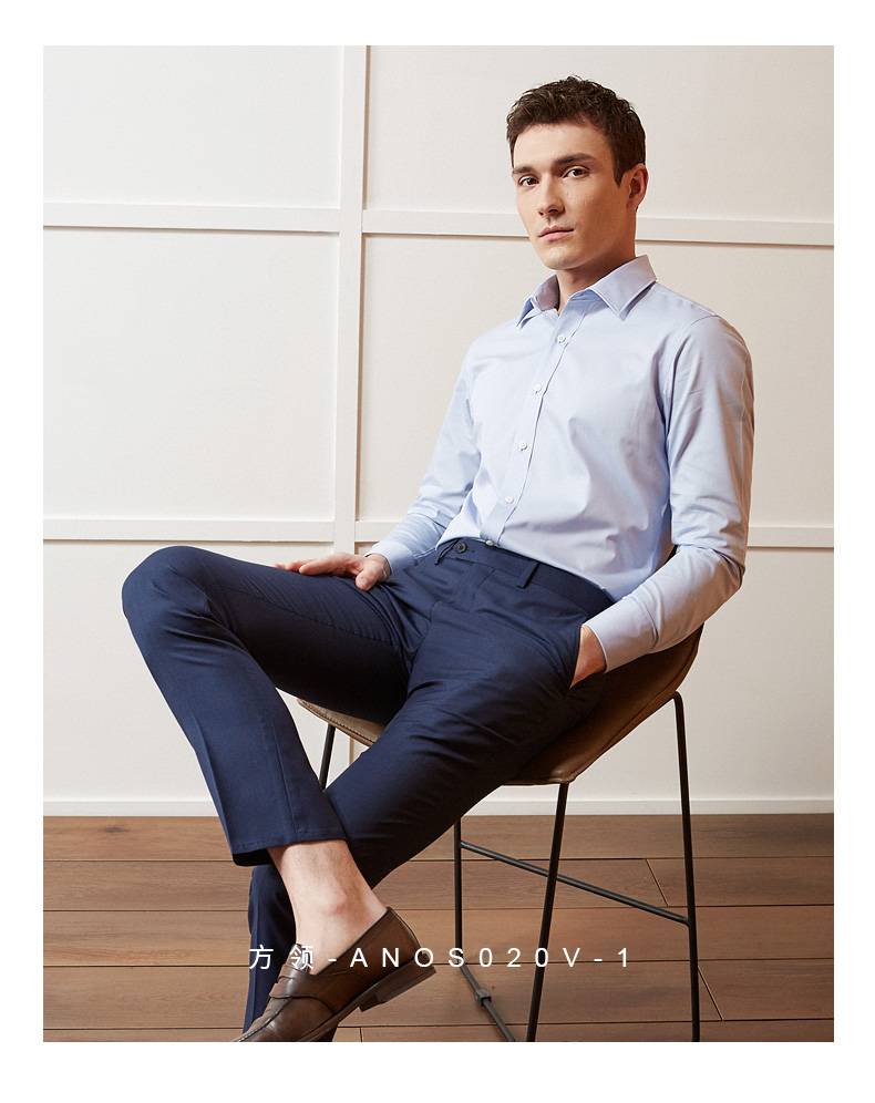 恺米切200支纱衬衫男 纯棉斜纹浅蓝修身版方领衬衣1PU03
