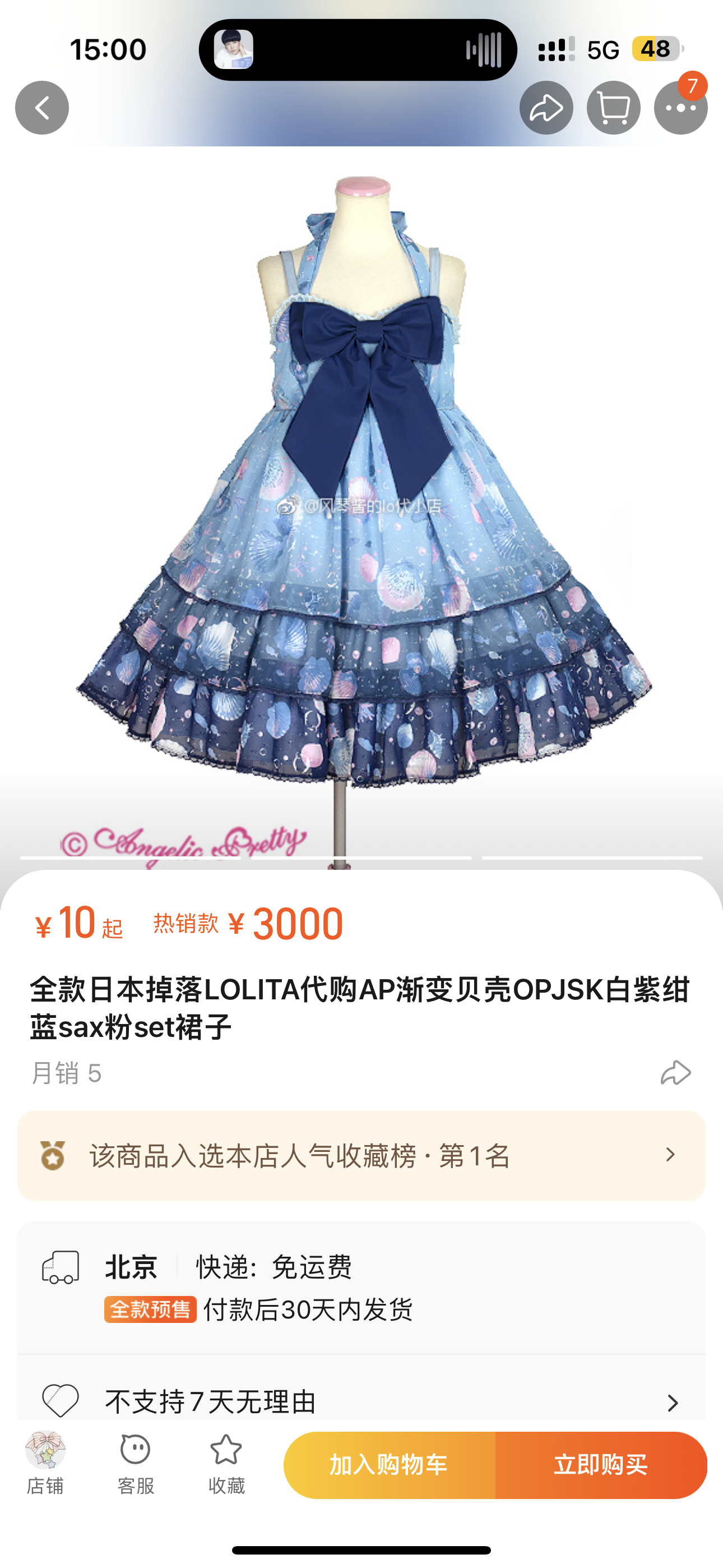 全款日本掉落LOLITA代购AP渐变贝壳OPJSK白紫绀蓝sax粉set裙子