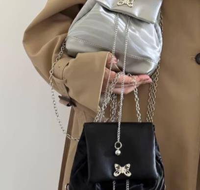 陈慕家包包女Y2K甜酷蝴蝶链条双肩包银色时尚背包学生上课单肩包