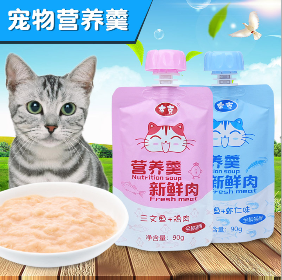 布克妙鲜包猫罐头 鸡肉三文鱼营养羹肉泥湿粮包90g干粮伴侣猫零食