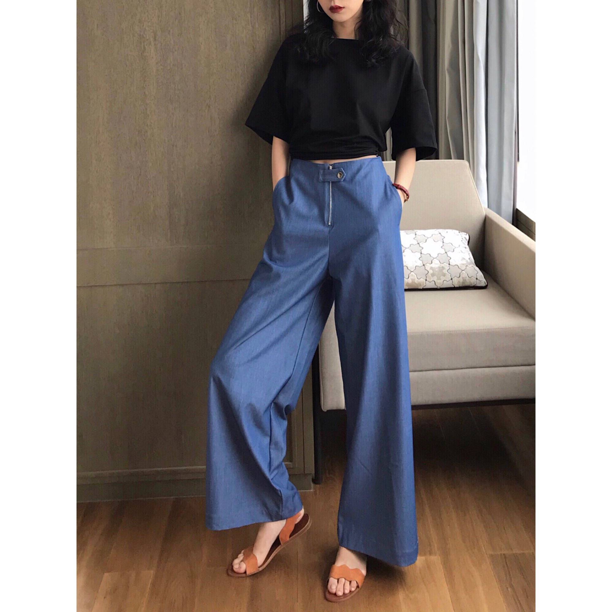 高腰阔腿裤女2018夏季新款复古长裤薄款纯色宽松柔软牛仔裤