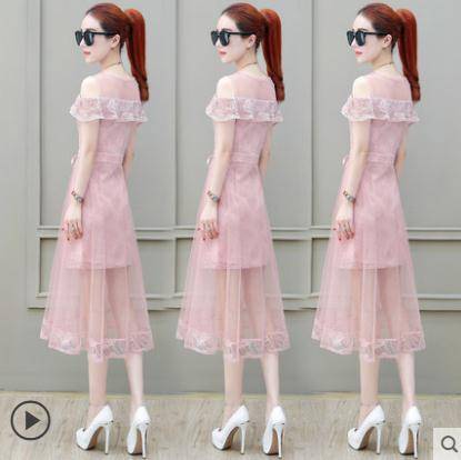 网纱连衣裙2018夏新款韩版中长款一字肩女人味气质少女心仙女裙子 128.00 已售:2件