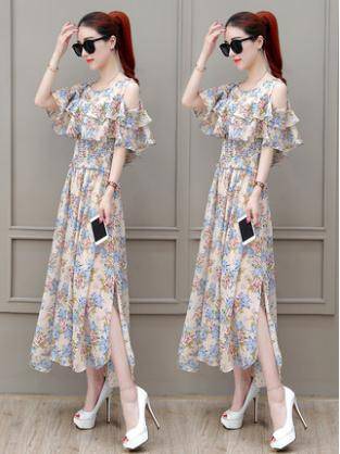 碎花连衣裙2018夏新款雪纺女神范露肩裙子超仙仙女长裙气质女人味 128.00 已售:1件
